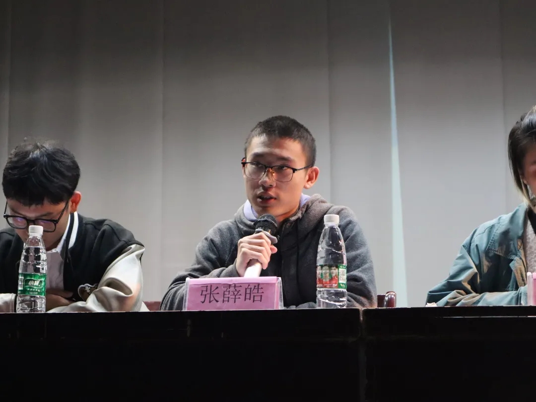 首先进行发言的是张薛皓学长,他从两个方面分享了自己的经验,主要是希望新生们扩大自己的人际交往范围,锻炼社会交际能力,多与同学老师交流,并从中收获挚友与真材实学。随后由杨紫微学姐发言,她不仅分享了自己在安排学习时间和制定学习计划上的心得,同时还告诫新生们“勿挂科,勿自欺”。