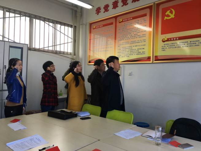 会上,全体党员除了重温誓词、交党费、学习党章,还深入学习了十九届三中全会精神和全国“两会”精神,讨论了如何在教学科研、教学审核评估等方面发挥党支部的战斗堡垒作用。