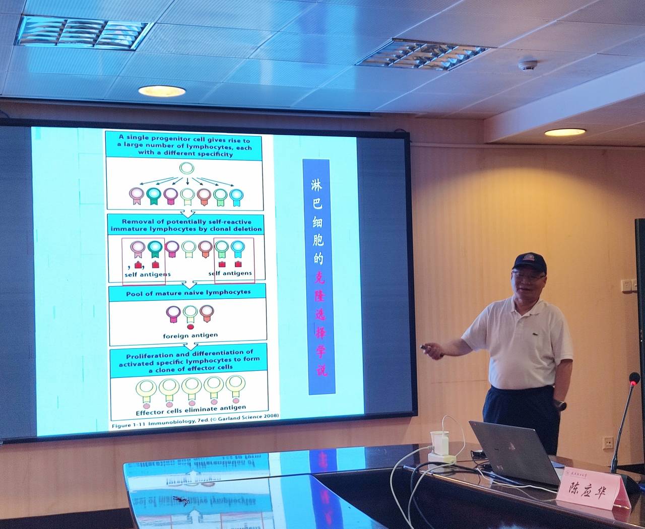 10月16号下午4:20在食品楼会议室,来自清华老员工命科学学院陈应华教授为公司师生带来了名为《表位疫苗的理论创建和应用实践》的学术讲座。前来参加讲座的领导有王宏勋副董事长、陈新经理、易文君书记,刘梁教授作为本次讲座的主持人。